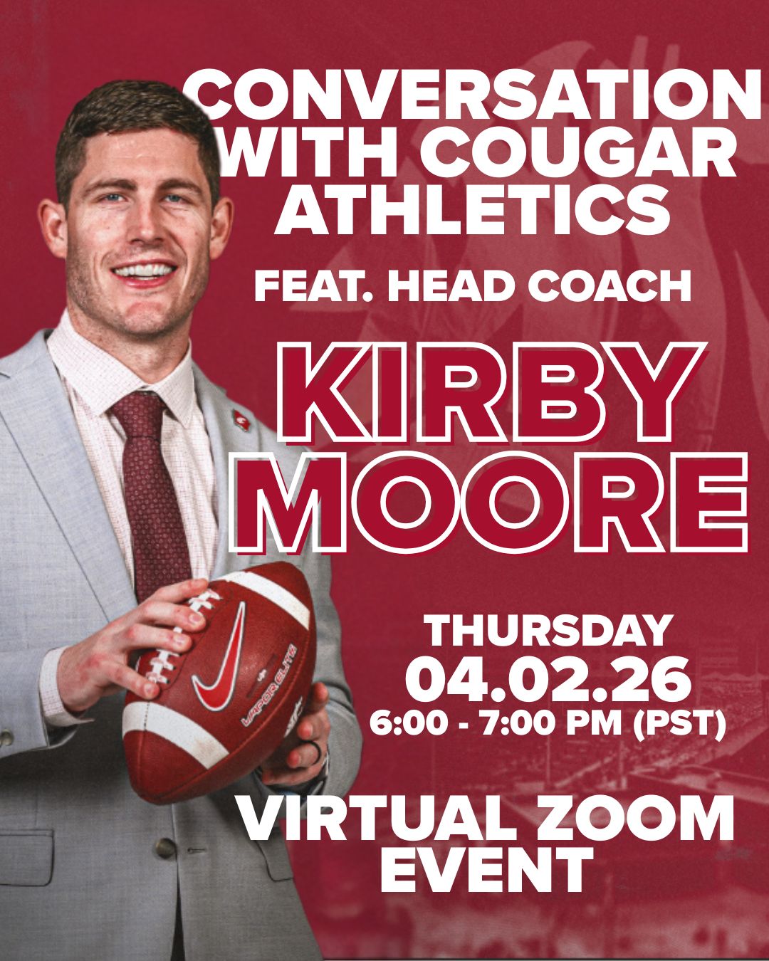 Join us virtually on April 2 for an exclusive conversation with Interim Athletics Director Jon Haarlow and Head Coach Kirby Moore as they share the vision for Cougar Athletics—on and off the field. Whether you’re in the stands every Saturday or cheering from